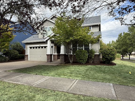 A rare find in Sherwood’s desirable Woodhaven area—with no HOA in this Pinehurst Estates neighborhood! This move-in ready 4-bedroom, 2.1-bath Craftsman home with a 3-car garage blends luxury touches with everyday comfort. Step into newly refinished maple hardwood floors and brand-new carpet. Soaring ceilings, extensive custom millwork, and plantation shutters add timeless elegance. The sought-after floorplan offers an open-concept kitchen/family room plus formal living and dining—ideal for both relaxed living and entertaining.The spacious kitchen is an entertainer’s dream: concrete counters, farmhouse sink, gas cooking, under-cabinet lighting, eat bar, walk-in pantry, and butler’s pantry. Newer stainless appliances include gas range, dishwasher, and refrigerator. A large nook provides space for informal meals, with easy access to the covered back patio featuring a gas hookup—perfect for year-round grilling.The generous family room centers around a cozy gas fireplace and is filled with natural light. Hardwood floors extend through the kitchen, nook, pantry, entry, and hallway. The main-floor powder room features stylish shiplap and tile, and the laundry room includes a utility sink, washer, and dryer that has gas hookup. Dryer can be electric or gas! Relax knowing the roof was replaced in 2022. Outside, enjoy the low-maintenance backyard with covered patio—perfect for outdoor dining and entertaining. Just one block to Middleton Elementary and part of the top-rated Sherwood School District.The easy access to wine country, Portland, Tigard, and Newberg makes this a prime location in one of the region’s most desirable communities.