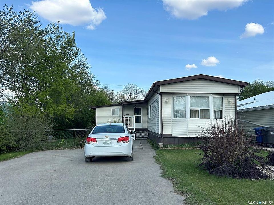 This three bedroom, two bath mobile home is located on a corner lot with double driveway at front, mature trees for privacy, and a covered deck ideal for entertaining! An addition off the front acts as a multi purpose room. Built in cabinetry, closets, and plenty of space for a sitting area, office, or gym....plus direct entry to the covered deck. This kitchen and dining room are bright and cheery with plenty of usable space. A spacious living room offers large windows, flooding this home with natural light, laminate floors, and open concept floorplan. The primary suite is located at the front and boasts a 3pc en suite. Two more bedrooms plus a full bath and laundry are located at the back of this home. A covered deck offers a great place to barbeque and enjoy the summer days! This backyard is fenced, boasting mature trees, raised garden beds, a patio area, 2 storage sheds and more. Shingles and siding were replaced in 2014, flooring updated in the kitchen, deck redone, driveway added and more. Plus a new washer. dryer, and stove in 2025. This affordable home is sure to impress! Call today to view!