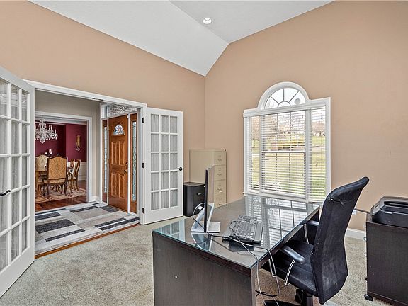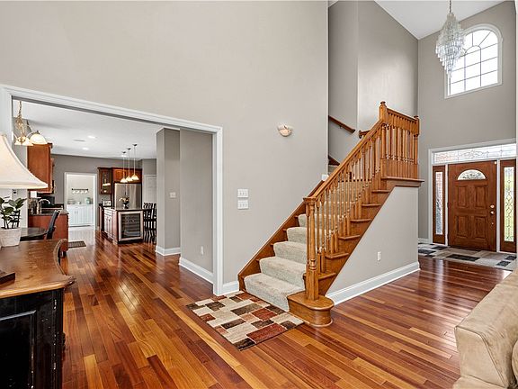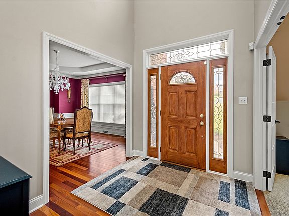 The charmed, easy life is waiting in this custom built no step entry gem on an impressive, scenic lot. A stately two story entry greets you while the hardwood floors draw you into the first floor den enclosed with French doors. A unique, reverse set banister adds to this well thought out floor plan. Hosting is made easy in the gourmet, eat-in kitchen with a granite island featuring a double sink, pantry & wine cooler. The kitchen opens up onto a large composite deck for outdoor entertaining, while the 2 story great room boasts a wall of windows and an abundance of natural light overlooking the rear grounds. The primary suite has cathedral ceilings and sitting area, and all of the spacious bedrooms feature custom closet systems and plush neutral carpeting. A massive walk out lower level opens on to a large level yard and play area that includes a fire pit perfect for after the big game hot cocoas and smores. Refined details and spacious living await you at 238 Arrowhead.
