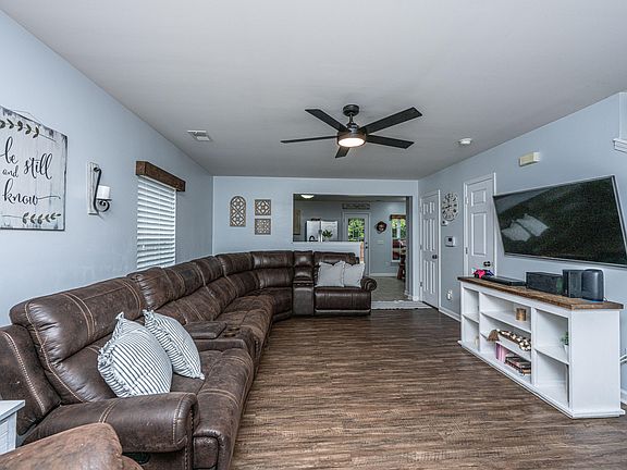 Additional guest roomsLarge fenced-in backyardKitchen and dining areaSpacious primary bedroomLaundry roomEntrance to the garagePrimary bathroom