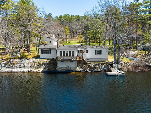 Charming seasonal cottage perched on the water's edge of Knickerbocker Lake. This 2 bedroom, 2 bathroom home has panoramic views of Knickerbocker Lake from each room inside. The property has a detached 2 car garage, dock/float & ramp.