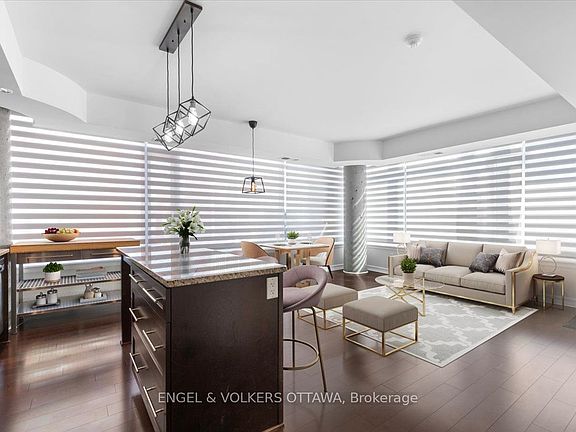 This bright 978 sq/ft model move-in ready corner unit offers an abundance of natural light with large windows, freshly painted interior (2025),and elegant finishes including granite counters and custom Hunter Douglas blinds and curtains. The building provides exceptional amenitiessuch as an indoor pool, exercise room, sauna, and party room, while underground parking and a storage locker are included for addedconvenience. Perfectly situated within walking distance to restaurants, cafes, the ByWard Market, Rideau Centre, Rideau Canal, LRT RideauStation, and Ottawa U, this home combines style, comfort, and an unbeatable location. Some photos virtually staged.