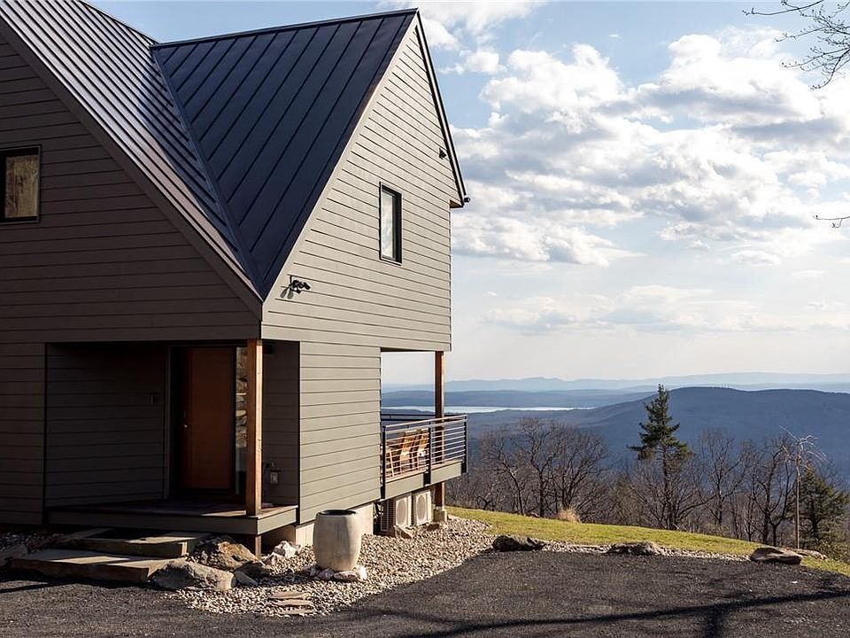 Nestled amidst the tranquil embrace of nature, this reimagined and fully reconstructed masterpiece stands as a testament to luxury sustainable living and architectural excellence. Perched atop the iconic Overlook Mountain in a secluded private community, this home boasts unparalleled views overlooking the picturesque village of Woodstock, Catskill Mountain range, and the tranquil Ashokan Reservoir in the distance. It offers a harmonious blend of modern design, environmental consciousness and energy efficiency.