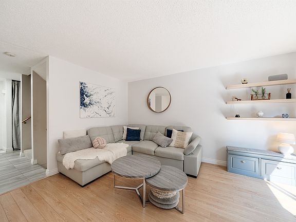 Welcome to Easthill! Spacious & updated 3-level CORNER townhouse offering approx. 1,800 sqft of comfortable living space, w/3 brs & 3 baths. Main level features a bright living/dining area w/ BBQ DECK overlooking a private greenery, updated stylish kitchen w/GAS STOVE, stone counters, chic backsplash, shaker cabinets & a powder rm that completes this level. Upstairs incl. 3 brs, full bath, a large primary suite w/a LARGE PRIVATE DECK to enjoy your morning coffee. Basement offers a HUGE REC rm (or 4th BEDROOM), electric fireplace, RENOVATED BATHROOM w/ walk-in shower/ heated fls, bright home OFFICE & a laundry/storage area. Private fenced backyard perfect for entertaining, QUIET family-friendly complex with INDOOR POOL for year-round enjoyment and 2 PARKING.