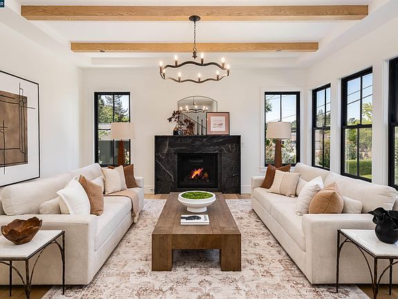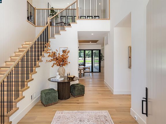 Approaching this brand-new custom home in sought-after Danville—backing onto Diablo Country Club Golf Course—you’ll find timeless design, premium finishes, and exceptional craftsmanship. Designed by John Newton, built by CS Development under Cristian Szilagy, and styled by Roxana Szilagy, no detail is overlooked. Inside, 22 ft. high foyer ceiling, white oak floors, stone countertops, and smooth-finish walls set a refined tone. Custom lighting and Andersen windows elevate every space, while owned solar adds efficiency. A striking foyer accent wall introduces formal living spaces. The chef’s kitchen shines with Taj Mahal quartzite counters, handmade Zellige backsplash, white oak cabinetry, walk-in pantry, Wolf cooktop, Thermador appliances, and an oversized island flowing to the family and dining rooms. Accordion doors open to a covered patio, perfect for entertaining. Two main-level suites offer ideal flexibility. Upstairs, the vaulted primary suite boasts a fireplace, balcony, spa bath with Calacatta Gold marble, dual closets, and laundry access. A loft and two bedrooms complete the level. Outdoors, enjoy a covered patio with skylights, firepit, lawn, and majestic oak. Within San Ramon Valley School District and near Blackhawk & Diablo Country Clubs, this is a rare opportunity.