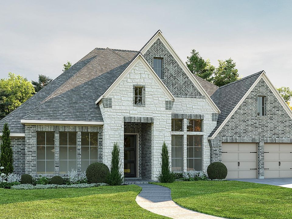 Home office with French doors frame entry. Game room with French doors and formal dining room just off the extended entry. Spacious family room with wall of windows and wood mantel fireplace opens to the kitchen and morning area. Island kitchen with built-in seating space, double wall oven, 5-burner gas cooktop and a corner walk-in pantry. Primary suite features a large wall of windows. Primary bath offers a French door entry, dual vanities, freestanding tub, separate glass enclosed shower and a wall-in closet. All additional bedrooms offer a private bathroom and walk-in closets. Extended covered backyard patio. French doors lead into the theatre room located off of the kitchen. Mud room and utility room just off the three-car garage.