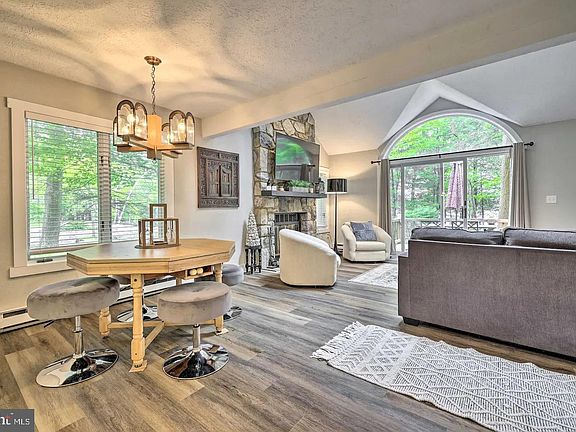 Welcome to your own little piece of paradise. Just imagine yourself sitting on your private deck, having a cocktail and overlooking the gorgeous lake. Enter the home into the foyer and you will see the whole home has been painted in today's neutral colors and features brand new engineered wood look flooring that flow thru the living and dining rooms. This is a WOW floor plan with vaulted and beamed ceilings and lots of windows with gorgeous views from every one of them. You will love entertaining in the open floor plan enhanced with a wet bar to mix your cocktails. Enjoy cozy nights watching the snow fall outside while you are warm and dry in front of your wood burning fireplace enhanced with floor to ceiling stone. You will love cooking in your kitchen that features tons of new granite counters, stainless steel appliances , ceramic tile flooring that flow into the breakfast area and is brightened by two huge picture windows with palladium sunbursts above. For your convenience the main bedroom is also on the first floor with sliding glass doors leading out to the deck overlooking the serene lake. There are three closets for all of your storage needs and an ensuite bath with double sink vanity. There is also a powder room on this level for your guests. Upstairs leads you to a balcony room that overlooks the lower level and has built in shelving and a closet so this area could definitely be used for any overnight guests. The second bedroom with views of the lake is also found on this level and there is a full bath that is shared by both of these rooms. There are sliding glass doors in the living room that leads out to a nice sized deck overlooking the woods and lake and there is a storage closet for all of your outside storage. And if that isn't enough you will feel like you are in an all year round resort, because you are! There is literally something for everyone. You can fish or canoe on the gorgeous lake or just relax on the beach that is steps away from your home. there is a huge pool with a pool house snack bar, changing room and you can even enjoy some adult beverages on the deck overlooking the grounds and pool including a baby pool. There is a tennis club with numerous tennis and pickle ball courts. Or if you are a golfer there is championship par 72 golf course featuring an adirondack style club house, restaraunt and bar where you can enjoy cocktails and a meal on the extensive outside deck overlooking the pristine golf course or enjoy yourself inside next to the fireplace or you can even host your special family event or reunion in your very own neighborhood. This community is also close to Jack Frost, Big Boulder and Camelback ski mountains as well as the famous Kalahari resort for your indoor waterpark fun! The listing agent has an ownership interest in this property