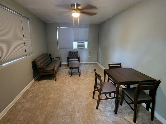 Ceiling fansVinyl flooringDining roomWindow coveringsStainless steel appliancesAir conditioning