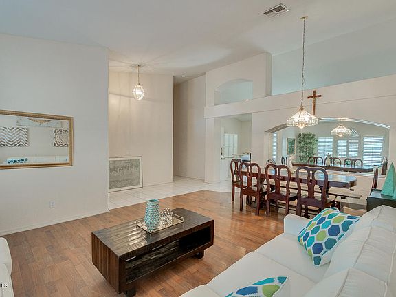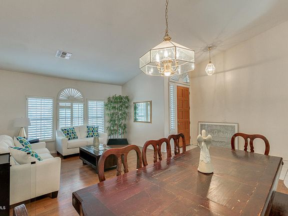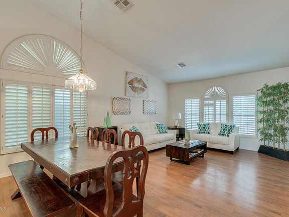 Wow! This home is immaculate and beaming with beauty! Soaring ceilings, gorgeous wood floors, and lovely plantation shutters welcome you upon entry into the home. The eat-in kitchen offers plenty of cabinetry and opens to the spacious family room. All the bedrooms are bright, feature beautiful wood floors, and have an extremely spacious feel with the high vaulted ceilings. The large back yard offers a covered patio, and it does not back to any neighbors for added privacy! This home is situated just minutes from all the great shopping, dining, and theaters of Gilbert Town Square, Mirador Square, and San Tan Village!