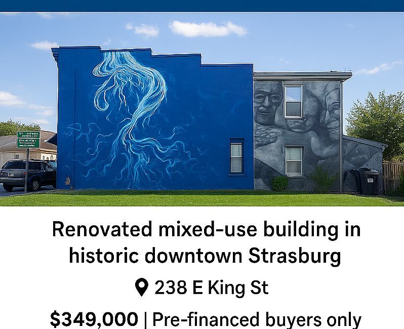 Fully updated with modern systems and finishes throughout. Two separate utilities, with an upstairs one-bedroom apartment with custom soapstone counters and hardwood floors, and downstairs flexible space for apartment, office, retail, or creative use. Enclosed backyard with professional GFI outlets — perfect for outdoor setup. Walkable to shops, festivals, and the Strasburg Box Office; quick drive to I-66 and I-81—showings by appointment only for pre-financed buyers.