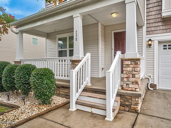 Welcome to 238 Farrington Drive in the desirable Pointe subdivision! This beautiful 3-bedroom, 2.5-bath home offers a spacious and inviting layout on a .25-acre lot with a 2-car attached garage. The open-concept main living area includes a bright living room, open dining space, and a large kitchen featuring ample cabinetry and a pantry for extra storage. A cozy additional sitting area provides flexibility for entertaining or relaxation. Upstairs, you'll find a generous loft — perfect for a kids' retreat, home office, or media room. The primary suite boasts high ceilings, a soaking tub, walk-in shower, double vanity, and a large walk-in closet. Enjoy peaceful mornings on the covered front porch accented by beautiful stonework columns. Conveniently located near shopping, restaurants, and major highways, this home combines comfort, style, and accessibility — a must-see in Clayton!