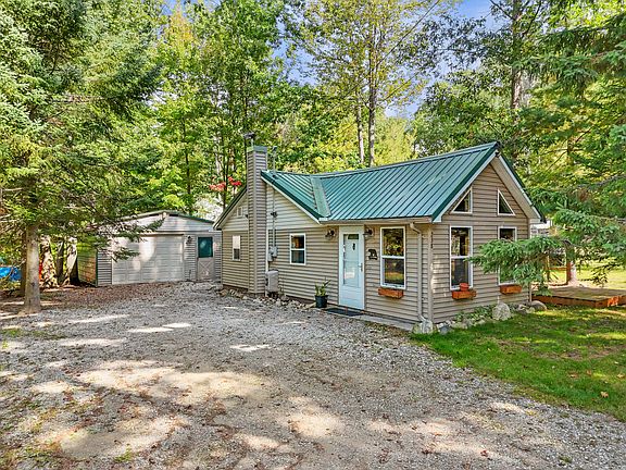 Escape to this charming 2-bedroom, 1-bath cottage with two inviting living spaces, a sleeping loft, and a beautiful stone fireplace that makes chilly evenings warm and memorable. Sold fully furnished, it's ready for you to enjoy every season at Higgins Lake—whether it's crisp fall mornings with coffee by the fire, winter weekends after snowmobiling, or summer days just a short walk to Sam-O-Set Beach. The covered porch with TV and the stone-surround firepit create year-round gathering spaces, while the deep 18x32 garage offers laundry, storage, and room for hobbies or a man cave. A true Up North retreat where memories are made in every season!