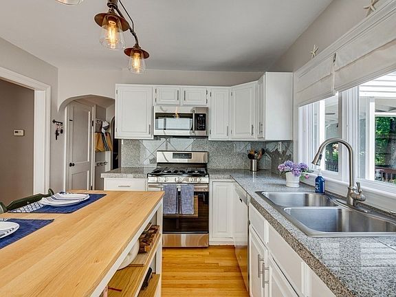 - Kit Dscrp: Flooring - Hardwood, Countertops - Stone/Granite/Solid, Kitchen Island, Stainless Steel Appliances, Recessed Lighting, Balcony / Deck, Slider, Lighting - Pendant