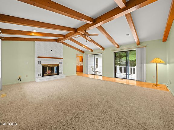 'Welcome Home' This charming mature 1734 sq ft home in Fairfield Glade Resort Community exudes character, situated conveniently near all the resort amenities. The interior features a vaulted ceiling enhanced by exposed beams, creating an open and airy atmosphere. A cozy fireplace serves as a focal point in the living area, perfect for gathering with family and friends.
