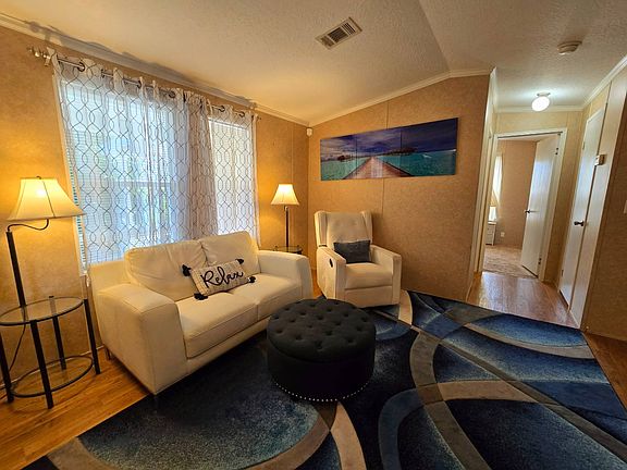 MOTIVATED SELLER!!! ALL OFFERS WELCOMED! NEWER 2013 MODEL 2/2 HOME IN BEAUTIFUL WINDMILL VILLAGE!! Be amazed by this LUXURIOUS COZY home that demonstrates the best of Florida living. The inviting 840 sqft of OPEN LIVING ROOM space offers ample natural light and the open concept Kitchen includes gorgeous appliances such as an oven/range, a refrigerator, dishwasher and microwave. The kitchen also offers plenty of built-in cabinet space and faces the OPEN CONCEPT living room area. Some UPDATES include a NEWER 2023 ROOF and Carport!! The master bedroom has lots of room and space with lots of natural lighting. The guest bedroom also has lots of room and good use of space and offers a secondary bathroom for convenience. Other great features include gorgeous flooring throughout home, central A/C, and much more. Let's not forget the adorable, screened lanai, my favorite feature, Perfect for watching sunsets and relaxing with great shade! What else can you ask for; this one won't last! This home also has high-quality Interior, includes an indoor washer and dryer and is comparable to a new model home. With plenty of parking, extra covered seating underneath the carport and a shed to give you extra storage space, what else do you need? CALL NOW, ALL OFFERS WELCOMED!