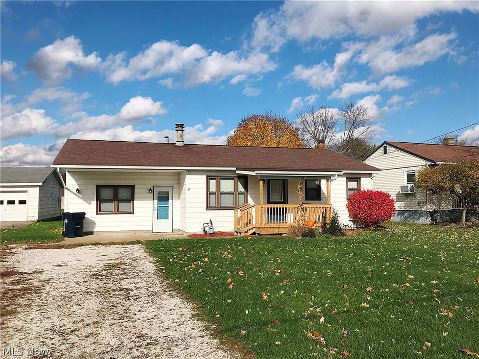 Nice ranch home in a great location. This property has 3 bedrooms, 1 full bath. first floor laundry and a 24x36 detached garage. There is new paint and flooring throughout. The living room has a gas fireplace. The large eat-in kitchen has a newer tile backsplash with lots of cabinetry and counter-space. There is a brand new covered front porch. The hot water tank and sump pump were replaced in 2017. The roof and furnace were replaced in 2012. There is a full basement that has a shower. Nice level back yard with an additional storage shed. Quiet location.