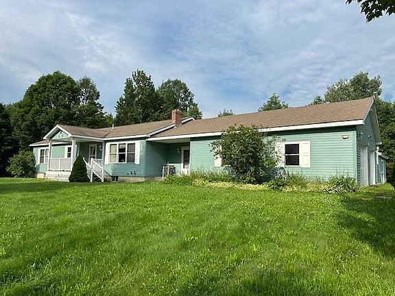 Are you dreaming of moving to the country? Would 12 acres of open fields and mixed woods be appealing? Just a mile down a gravel road, you can drive up this long driveway and pull into your 27x27', 2 bay garage with plenty of room for toys! You'll have direct access to a very nice, heated mudroom with built-ins. The laundry room is conveniently located just inside the door and has a large coat closet. Next, you'll see the open concept kitchen/dining area with a covered deck - great spot for barbeques or just relaxing at the end of your day. The spacious living room has a wood stove with an elevator to bring wood up from the basement! Most of the rooms have recently been professional painted and have 3' wide oak floors. There are three large bedrooms. The primary bedroom has a private bath and