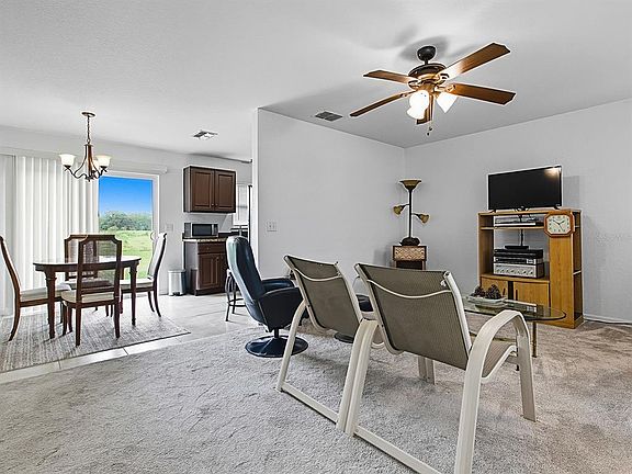 ** A BONUS LOT OF .23 OF AN ACRE MAKES THIS PROPERTY UNIQUE The allure of a name—The Floridian—elegantly suggests a lifestyle of ease and comfort, an aspiration we all share. And when this charming moniker graces a thoughtfully designed residence, it creates an irresistible combination of practicality and charm. Nestled on a generous double lot, this delightful 3-bedroom, 2-bathroom home is not only affordable but also brimming with potential. Located just beyond the bustling heart of town, this home provides the ideal balance of convenience and tranquility. A short jaunt away from The Villages, you'll find yourself in a serene neighborhood, perched on a lush .47-acre plot that offers a coveted sense of privacy. The scenic backdrop overlooks a peaceful green space, featuring a retention pond that assures privacy & more space between you & any possible neighbors. Perfect proximity to top-rated schools, shopping destinations, and medical facilities makes this location highly desirable. The painted entry sidewalk leads you to the covered front porch perfect for resting after a long day. Coming inside, the interior seamlessly blends modern updates with timeless appeal, boasting a commercial-grade water heater, a practical garage workbench, and a foyer that welcomes you with stylish new tiles. Fresh carpet and a tasteful coat of interior paint from 2022 enhance the home's inviting atmosphere. Highly functional spaces are throughout. A coating has also been applied to the kitchen and bathroom counters. Elegant tile backsplashes accent both the kitchen and bathrooms. An open-concept living space invites gatherings, featuring a harmonious flow from the living room to the dining area, integrally connected to the kitchen—perfect for delightful entertaining. Built in 2018, the home exudes a quality akin to new construction, yet benefits from thoughtful enhancements that amplify its appeal. This residence is an exceptional find for those seeking a blend of contemporary comfort and serene living space at an accessible price. Come and explore The Floridian—a place that feels like home from the moment you come inside.