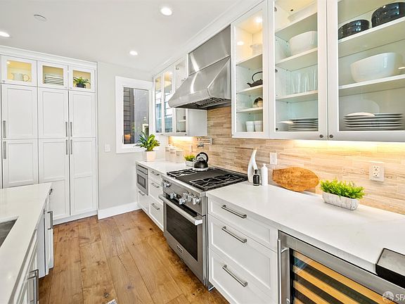 Nestled in the heart of SF, 238 Parker Ave, is a sanctuary of elegance + modern sophistication. This refined 2 level condominium graciously offers the privacy and comfort reminiscent of a standalone residence. Both floors are accessible by an elevator at the garage level, where you also access the deeded IPE/Brazilian walnut deck and newly landscaped fenced yard. Upon entry, you're greeted by newly refinished floors throughout. The chef's kitchen is a culinary artist's delight, featuring high-end appliances including a Miele range, Fisher & Paykel refrigerator and freezer, and a built-in wine fridge. Floor-to-ceiling custom cabinetry and a large Silestone waterfall island with seating for 4 provides both style and utility. The light-filled open-concept LR and DR area is anchored by a sleek linear gas fireplace and enhanced with radiant floor heating. There are 3 bedrooms + 3.5 bathrooms, including a luxurious primary ensuite with a standalone soaking tub and spa-like ambiance. The. powder room has a designer floating vanity. designed for ultimate relaxation. The inclusion of an elevator ensures effortless access across both levels, enhancing the convenience and accessibility. Experience the perfect blend of timeless elegance and contemporary living at this extraordinary address.