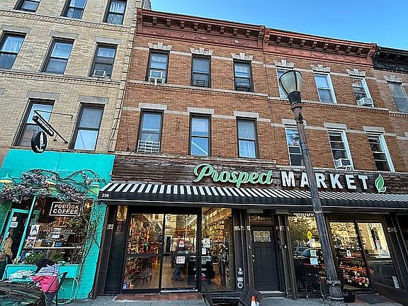 Mixed use brick building 238 Prospect Park West Brooklyn. One retail/commercial space and two apartments. 20'x98' Lot, 20'x98' retail space, two apartments - 20'x55' each and a full basement. Currently the ground floor supermarket tenant occupies a double storefront: 236 and 238 Prospect Park W. The sale price represents 50% share of the property. The property is currently 100% leased with great rental income. Great location and busy commercial stretch near Prospect Park and Bartel-Pritchard Square.