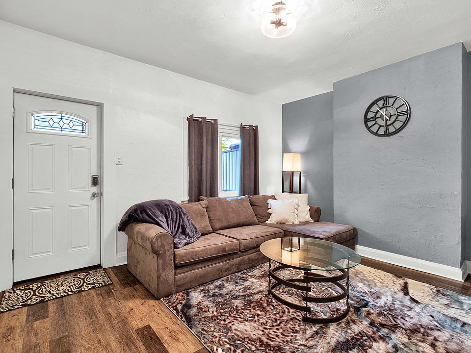 Fresh paintOff street parkingPrivate back porchNew flooringLarge closetCentral acBrand new tiled bathroom