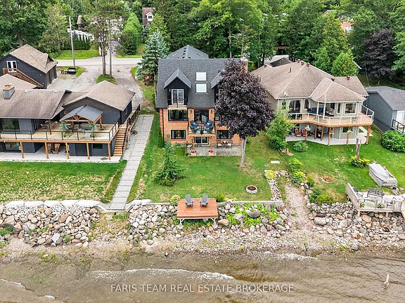 Top 5 Reasons You Will Love This Home: 1) Enjoy stunning waterfront living with over 50' of Georgian Bay frontage, offering expansive views and a layout that easily adapts to your needs 2) Featuring three distinct private living areas, including a fully finished lower level with its own kitchen, living space, bedroom, and bathroom, as well as an upper-level suite with a bedroom, bathroom, family room, and kitchenette, perfect for guests or rental opportunities 3) The spacious main level offers an open, flowing design with a cozy fireplace, a gourmet kitchen equipped with granite countertops and built-in appliances, as well as a quiet sitting room ideal for a home office, and a conveniently located laundry area 4) Thoughtfully updated between 2020 and 2024 with new heating and cooling systems, updated windows and patio doors, a refreshed roof complete with skylights, modern siding, and newly built decks 5) Located in the heart of Victoria Harbour with quick access to everyday amenities and Highway 400, making travel to Midland, Orillia, Barrie, and Toronto fast and convenient. 3,147 square feet plus a finished basement.