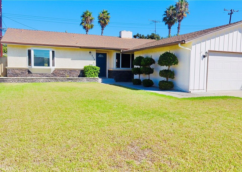 Beautiful single-story home in the city of Anaheim! This home features a spacious living room, dining area, and a kitchen with Corian Countertops, Frigidaire 'Gallery' Series Stove/Oven, Microwave and Dishwasher, Oak Cabinets, Tile Flooring, Pull Out Cabinets, Pantry Shelves, Corner Rotating Shelves for Pots and Pans, Recessed Lighting with Dimmer Switch, and a Greenhouse Window. It offers 3 bedrooms, 1.75 bathrooms, a two-car garage with direct access, a long driveway, fresh paint, and tankless water heater pump. The front yard is beautifully landscaped, and the backyard has plenty of space and is perfect for entertaining. There is plenty of parking on driveway and street parking. Close to great shopping, eateries, and entertainment such as Target, Disneyland, Downtown Disney, and more! Move in ready!
