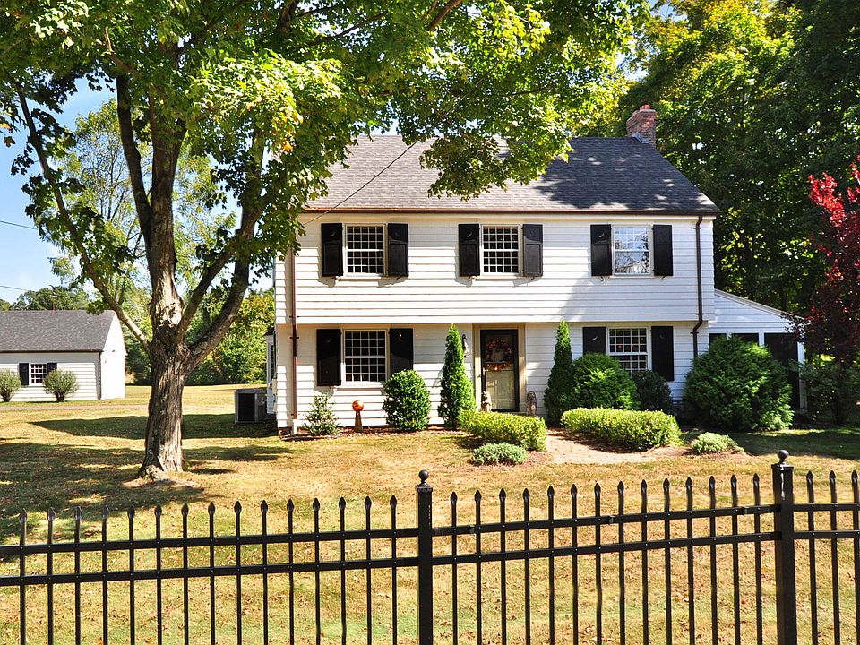 A diamond has hit the market in Granby's Salmon Brook Historic District-where classic colonial character meets exceptional updates. Charming and brimming with original details and thoughtful upgrades, this Colonial is set on a beautiful level lot with professional landscaping, stone accents, and a custom fence with two gated entries, offering wonderful curb appeal. Inside, the sun-filled living room showcases original wainscoting and built-in bookshelves, while the formal dining room flows to a remodeled eat-in kitchen with granite counters, Coffee Bean cabinetry, and a center island. Upstairs, you'll find three spacious bedrooms and a refreshed full bath. A walk-up attic plus dry basement provide excellent storage. Enjoy outdoor living on the paver patio with firepit or the relaxing screen porch with custom tiger-wire screens. Major improvements include a high-end Owens Corning 50-year roof, 200-amp electrical service, central air, and many more upgrades (see attached list). Public water, sewer, and natural gas add everyday convenience. Just a short walk to Granby Center shops and Salmon Brook Park, this delightful home perfectly blends historic charm with modern comfort.
