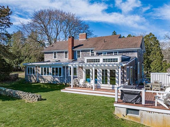Welcome to your dream Farm Coast property — set on 1.72 bucolic acres in the heart of southern Tiverton, lined with historic stone walls and majestic trees, this property offers timeless charm and modern comforts, including a private basketball court. A cobblestone driveway and bluestone steps lead to the front entrance of this lovingly renovated 1850 shingle-style home with 3,695 sqft of character-filled living space. Inside, enjoy warm, inviting rooms perfect for everyday family living and entertaining. The kitchen features a cooktop island, ample counters and cabinets, and a pass-through window to the eastern-facing sunroom—lined with windows, shingled interior walls, wainscoting ceilings, and banquet seating that opens to a pergola-covered deck. Multiple dining and living areas, a skylit media room, and an adjacent gym/office offer flexible spaces. Upstairs are five spacious bedrooms and four full baths, including three ensuites. A 2-car garage includes a second-level studio—perfect for a home office, creative space, or guest quarters. Minutes from Tiverton Four Corners, local beaches, and Westport Village, this is a rare opportunity to own a slice of coastal New England charm.