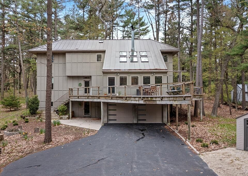 Nestled on wooded lot in desired Black River location. This 3 bed 2.5 bath exudes architectural interest.Open kitchen & dining for entertaining. Family room w/exposed beams & w/skylights is separated from kitchen/dining only by double sided gas fireplace. Deck access from several points of living space. Finishing the 1st floor is a fresh/modern powder room and additional living room/den w/ pocket doors for those looking for solitude. Stunning staircase presents like artwork. Primary bedroom has exceptional closet space& high end bath renovation. 2 bedrooms, full bath & hall w/ built-ins for dreamers rounds out top floor. Exposed basement & 2.5 plus car garage to hold all the things. If you are looking for a vibe w/proximity to beach for long walks this house passes the test.