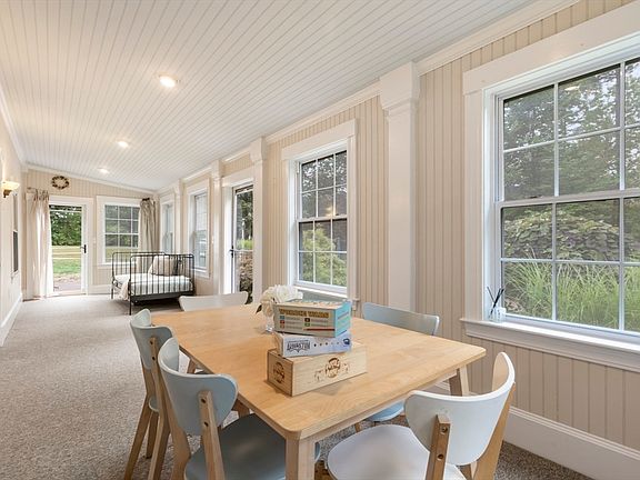 Beautifully renovated/expanded cape set back from the road surrounded by lush plantings in a wooded private setting that is filled w/character inside & out. Updated kitchen adorned by quartz countertops, upgraded cabinetry, backsplash, attached island & nice new vinyl plank flooring w/arched opening to formal dining room w/built-in hutch & hardwoods. Relax fireside in the front-to-back living room w/hardwoods & picture window. An updated half bath completes main level. The spacious lower level family rm offers additional flex space. Retreat to the primary suite w/vaulted ceiling, built-ins, walk-in closet & primary bath. Two other bedrooms w/built-ins & a nicely updated full bath w/granite round out the upper level. A sunroom addition provides versatility for office/sitting room. More highlights include: Breezeway/mud room, multiple patio areas in beautiful yard, oversized garage w/10’ doors & epoxy flooring, fully fenced backyard, award winning schools & under 4 mi to commuter rail!