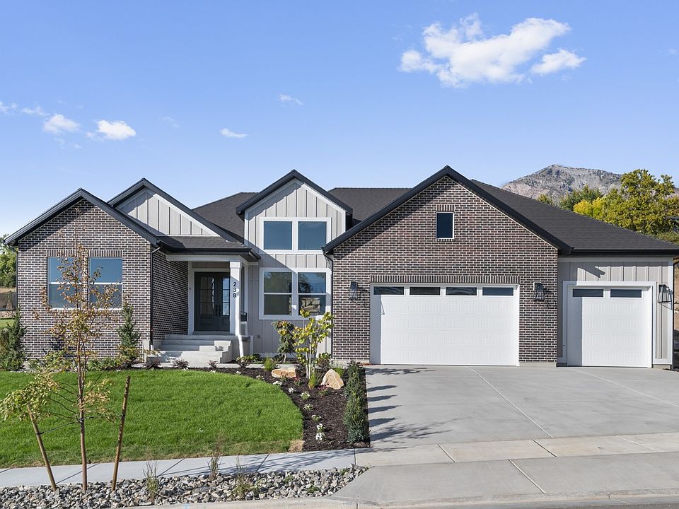 This Sorrento Traditional rambler blends luxury and comfort for all your living needs! This thoughtfully designed home offers a partially finished basement with 9-foot foundation walls, an expanded 3-car garage with an exit door, and an expanded covered deck for entertaining. A chef's kitchen is highlighted including maple cabinets with LED lighting, granite countertops, stylish pendant lighting above the kitchen island and premium stainless steel Caf gas appliances with double ovens. Enjoy elegant hardwood, tile, and carpet flooring, while textured walls, 2-tone paint and Roosevelt base and casing provide finishing touches to this home. Practical upgrades include a water softener system, gas line to the dryer, USB outlet in the owner's bedroom, can lighting, Christmas light outlets, and a flood light package. The bathrooms feature beautiful tile surrounds and black matte hardware while the great room highlights a cozy gas log fireplace and ceiling fans in the office, owner's bedroom and great room provide year-round comfort. You do not want to miss out on this gorgeous home all in a great community!