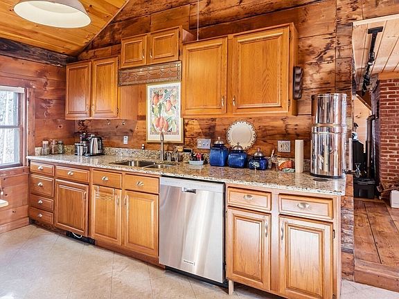 A must see!!! Primitive Colonial Design that includes a Rumford fireplace with a Beehive oven built in 2008. Antique wide hard pine floors in dining and living room. 12" pine shiplap can be found in the kitchen, dining and living room. Kitchen offers a tasteful tribute to old and new with SS appliances and granite with wood vaulted ceilings and a tasteful mix of storage. Second level includes two bedrooms and reading nook. Bathroom stays true to the primitive colonial design with an oversized cast iron tub. Home includes a lofted workshop designed for the craftsman. Landscape includes many established gardens including rhubarb, asparagus and blueberry bush exists on the property. Well water pump replaced in 2019. Furnace recently serviced and it was noted to be well functioning.