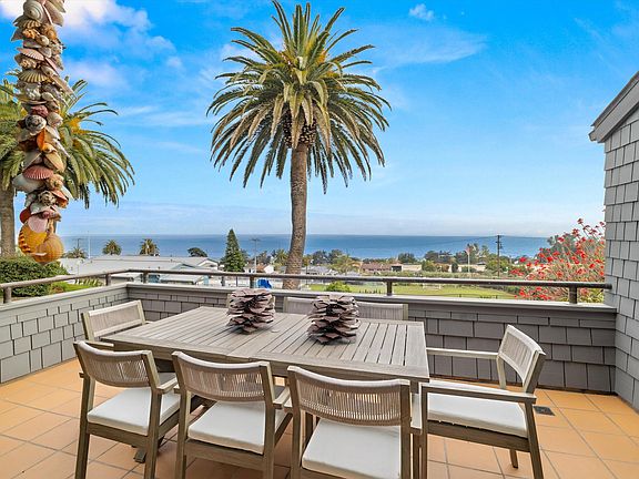 Enter and ascend to the main living area, featuring a spacious, light-filled living room with a cozy gas fireplace, expertly renovated kitchen and views of the ocean and Channel Islands with sea breezes from the back patio and view deck. New wood floors, and many updates throughout enhance the home's charm and functionality. A few steps up from the main level, are 2 bedrooms both offering outdoors access and a shared renovated hall bath. The primary suite with gorgeous bath, private terrace and walk in closet will not disappoint.