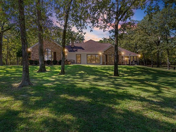 A rare blend of luxury, comfort, and park-like settings on a gated 64-acre estate with a private lake, fully remodeled 4 bedroom, 4 bath main residence, and 600 square feet guest quarters! Escape the traffic and bring your fishing poles or kayak to your own professionally-maintained 7-acre Trophy Bass Lake. From the main residence, you'll enjoy panoramic water views from two porches and an open floor plan, inside. The kitchen includes new quartz countertops, stainless steel appliances, double oven, gas cooktop, and more! A game room and exercise room can be used as additional living areas, office, or flex space. Additional perks are a sauna, 3 central HVAC systems, Reverse-osmosis drinking water (house & barn), misting systems, electric gate with lighted entrance, and ADT security. Inside the 3,000 square feet barn, you'll find 2 remote-operated overhead doors (14x12 each), built-in shelving, entertaining space, and 2 RV hookups (30-amp & 50-am) with sewer. A 600 sq.ft Barn Apartment includes a kitchen with granite countertops, bedroom, living room, full bath, and Central HVAC. Bonus--all have access to FIBER OPTIC Internet! Outside, you'll appreciate the fire pit, new deck & fishing pier with boat dock, 2.5 acres of irrigated yard, Bluegill and Largemouth Bass (up to 9lbs recorded!), meticulously maintained grounds, and transferrable timber AG-exemption. Abundant wildlife provides hours of delight from bird watching (with hundreds of species), to sightings of white-tailed deer, wild turkey and ducks, bald eagles, or owls. Relish the wonders of nature in this pristine oasis, only 72 miles from downtown Dallas. Between the spacious 4,112 main home, manicured 64 acres, and private lake, you'll be the envy of family and friends with this enchanting retreat in Cumby, Texas! Sold fully furnished, move right in and start enjoying the peaceful setting, wildlife and ranch life on day one.