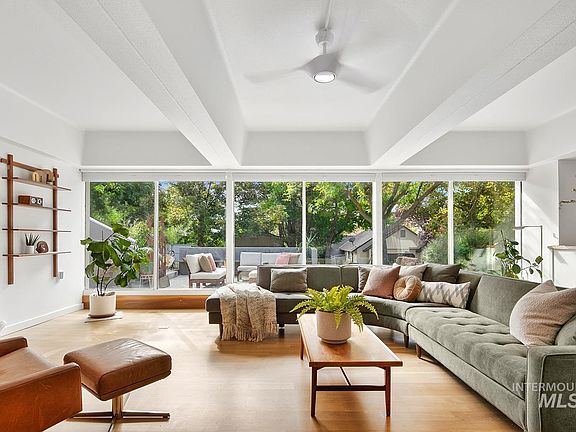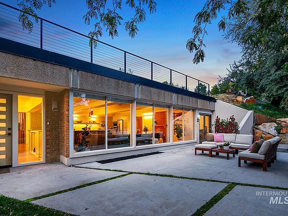 The opportunity to own an Earth Home in Boise doesn’t come around often. Nestled in the foothills just above Downtown Boise, and rumored to have had famed architect Art Troutner's involvement during development stages as his personal residence lies just above. The resulting design is uniquely built into the earth and integrated with the landscape, showcasing the true beauty of the east foothills. Upon entering the home, you are met with the unique coffered ceiling design and a peek into the home's true hidden treasure, an internal atrium — vaulted ceiling and transom windows flood the space with natural light. The single level floor plan offers the best of functionality with good separation of spaces while keeping a very open feel. External concrete walls set into the hillside support the roof system and allow for an open floorplan, as well as floor-to-ceiling glass windows on the front facade. The earth, rock, and native plants reintroduced onto the structure create a natural passive solar design insulating the home while creating an entertainer's roof top patio space with panoramic foothills views from over a 1/3 of an acre. Kick back, enjoy an evening fire while you watch the stars, and possibly spot a fox, or deer. A large 2 car garage and workshop space tucked away offers plenty of space for all storage needs. The Earth House reimagines modern living at its best.