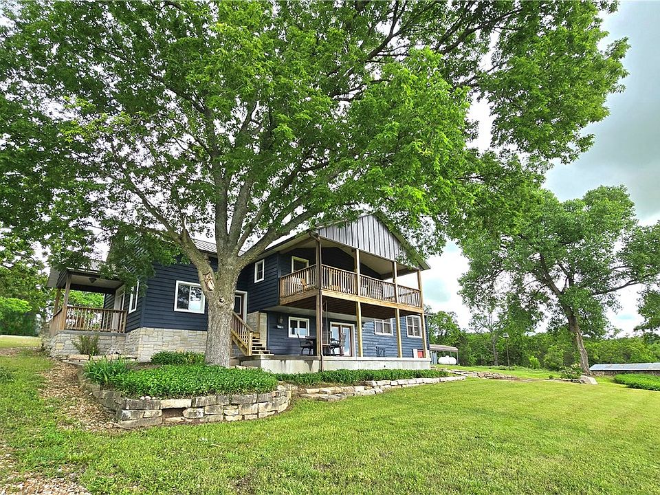 The views are spectacular from this custom-built home on 6+ acres with Kings River frontage! You will find a warm and inviting, split level, home that is full of beautiful finishes throughout including hardwood floors and cedar plank ceilings. The kitchen boasts of custom cabinetry, granite countertops, a massive pantry, stained concrete flooring with radiant heating, along with all the appliances. Your oasis awaits just off the primary bedroom. There, you will find a private balcony overlooking the river and countryside to watch the sun set. At the end of the hallway, you will find a flex space with a half bath and separate entrance that could be used for a home office, game room, additional bedroom, or more. Other amenities include walk in closets in all bedrooms, central vacuum, tiled walk-in showers, jetted tub in primary, 85-gallon water heater, and laundry sink. Fenced on 3 sides. Multiple outbuildings for livestock and storage for your kayaks, canoes, and fishing gear! Make this your home! Call today!