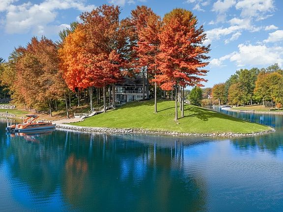 Paradise awaits you at this spacious nearly 4, 000 sq ft. masterfully updated home. Perched upon your own private peninsula with over 500 feet of frontage on private, all-sports Lake Lancelot in the exclusive Sugar Springs community - presents a chance to make your dream home a reality. Interior Upgrades - New Luxury Flooring throughout main level, motorized shades (window treatments), both fireplaces upgraded & converted to gas. Fully updated kitchen - ALL new appliances, quartz counters, sink & faucet, glass backsplash plus new washer & dryer. Two brand new mini split AC & heat systems + upgraded boiler, upgraded electrical & plumbing, and bathrooms completely updated. 3 Car heated garage extra deep, freshly painted w SW Duration paint (inside & out) including decks. Exterior Upgrades - new beach & entire shoreline cleared, all new stamped concrete steps & walkways, extensive professional landscaping, new beds & all plants, trees professionally trimmed. Beautiful mature trees (pine, birch, oak & maple), driveway resurfaced, and brand new HotSpring salt water spa. New sprinkler system & water pump. All new WIFI enabled lighting inside & out including uplight on trees & all decks. Generator hookup installed, survey completed on this 1.7 acre private peninsula with incredible views