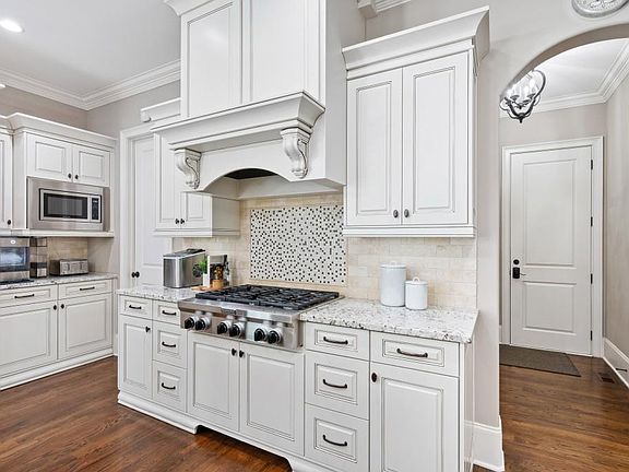 Welcome to this luxurious four-sides brick estate in the coveted Greystone Manor subdivision, where exquisite craftsmanship, timeless architectural beauty and modern smart-home conveniences come together in perfect harmony. Thoughtfully designed for gracious entertaining and everyday comfort, this extraordinary residence offers an inviting open-concept layout filled with light, elegance and warmth. Inside, the dramatic two-story foyer welcomes you, where soaring 12-foot ceilings create a grand sense of arrival. Beyond, discover a handsome beam and vaulted office, a sophisticated formal dining room and a gourmet chef's kitchen that is sure to impress. The kitchen shines as the heart of the home, showcasing stainless steel appliances, gleaming granite countertops, custom cabinetry, a spacious walk-in pantry and an expansive butler's pantry ideal for hosting. A sunny breakfast room flows into the welcoming keeping room with a fireplace, while a charming screened porch and deck extend living outdoors. Every detail has been thoughtfully curated, from the mudroom and three laundry rooms to the custom built-ins and a sitting room with a fireplace. The main-level primary suite offers a peaceful sanctuary with a spa-inspired bathroom featuring dual showers and generous dual custom closets. Upstairs, secondary bedrooms are generously sized, and each enjoys a private en suite bathroom. The finished terrace level is designed with versatility in mind, featuring a private in-law suite, a fully equipped gym with mirrored walls and rubber flooring and expansive spaces for recreation and relaxation. Outside, you will discover your own resort-inspired oasis. Over $595,000 in capital improvements have transformed the grounds into a breathtaking retreat, highlighted by a custom heated saltwater pool with stonework, waterfalls, lush tropical landscaping and professional terraforming. Evenings are magical with Brilliance Wi-Fi-controlled uplighting, a custom underdecking system with flood lighting and an outdoor kitchen boasting a 38-inch Brahma by Bull built-in grill with access doors. A fenced backyard and meticulously maintained landscaping complete this picture-perfect setting. Additional luxuries include a four-car garage with custom poured flooring, a custom executive office, refinished hardwood floors, a freshly repainted exterior and upgrades such as a Samsung Smart refrigerator, ensuring both beauty and function at every turn. This exceptional residence offers more than just a home it presents a rare resort-style lifestyle in a private, gated community, perfectly blending luxury, comfort and convenience.