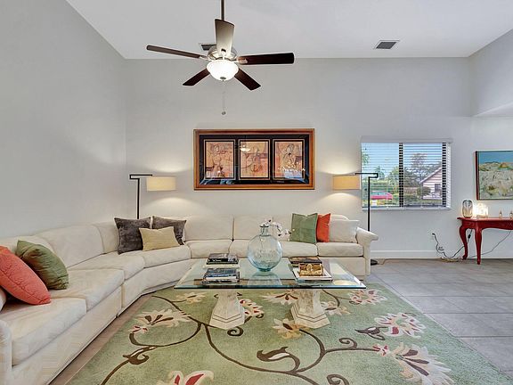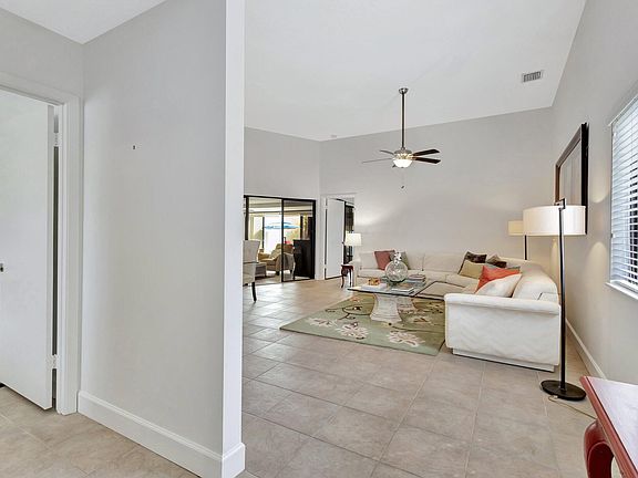 A MUST-SEE super affordable Villa in a Delay Beach 55+ hidden-gem community! Rainberry Bay is only 15 mins to Delray's beautiful beaches &10 mins to the restaurants and shops on popular Atlantic Ave. This spacious 2/2 villa offers 1560 sq ft of living space under air, boasting a huge sunroom with access from the kitchen, living room, primary bedroom & leads to a fenced-in private, cozy patio. The primary bedroom features a massive bath & walk-in closets. Vaulted ceilings in the living /dining area provide a huge, bright & airy space to entertain. The kitchen has a breakfast nook & stainless steel appliances less than 5 years old. Low HOA covers security, lawn care and maintenance free exterior including the roof! Amenities include 5 pools, clubhouse, tennis/pickleball courts & much more!!