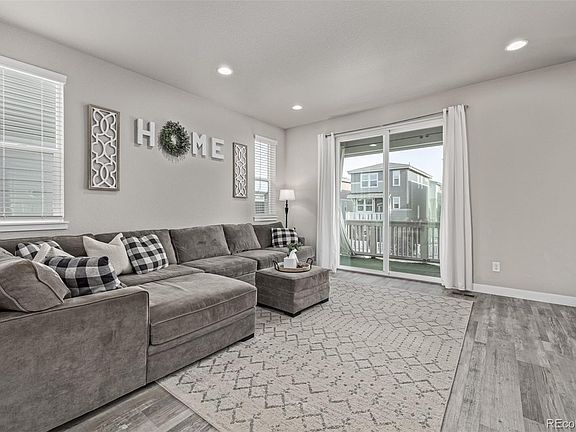 Welcome to this meticulously maintained three-bedroom, three-bathroom, three-story home in The Heights. The ground floor entrance leads to an area for an office, an entry bench, an oversized laundry room, a maintenance-free side yard, and a two-car garage. The bright living room features laminate flooring, neutral-toned walls, and a half bath, while the chef's dream kitchen boasts modern SS appliances and a central island. Three spacious bedrooms with new ample closet space include a primary bedroom with an ensuite bathroom and walk-in closet. Enjoy outdoor living on the covered porch and covered deck with privacy shades. This home was built in 2020 and has *paid off* solar panels. Located in the coveted Cherry Creek School District, this home offers convenience to amenities and highways. Don't miss the chance to own this gorgeous, contemporary residence!