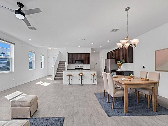 One or more photo(s) has been virtually staged. This end unit townhouse is filled with natural light, thanks to its abundance of windows and soaring ceilings, creating a bright and open atmosphere. As you step inside this home, you'll be greeted by high ceilings and neutral colors which enhance the abundance of natural light. The expansive great room is perfect for entertaining, and the kitchen features sleek espresso cabinets, stunning granite countertops, and stainless-steel appliances. The great room also opens to a screened lanai, ideal for enjoying the Florida weather. There is also a half bath on the main level. As you make your way upstairs, you'll discover a thoughtfully designed split floor plan. There are two generously sized bedrooms and a nearby bath, while on the other side is a spacious primary suite and laundry room. Both elegant bathrooms are adorned with granite countertops. This home boasts a 2-car garage, a long paved driveway and ample guest parking nearby. This gated community of Hawk's Crest offers fantastic amenities, including a resort-style pool, playground, parks, and picnic areas, all with low monthly HOA fees(which include cable and internet). Perfectly situated just a 2-minute walk from the new Park Maitland Preschool and a 5-minute drive to Trinity Prep, one of Central Florida's premier private middle/high school. Also near the entrance of the community is Foxtail Coffee, Kelly’s Homemade Ice Cream, and The Ravenous Pig restaurant. You will find this community is centrally located, as you are just 10 minutes from the thriving downtown Winter Park and easy access to all major highways. Don't miss your chance to own this beautiful townhome—schedule your showing today!