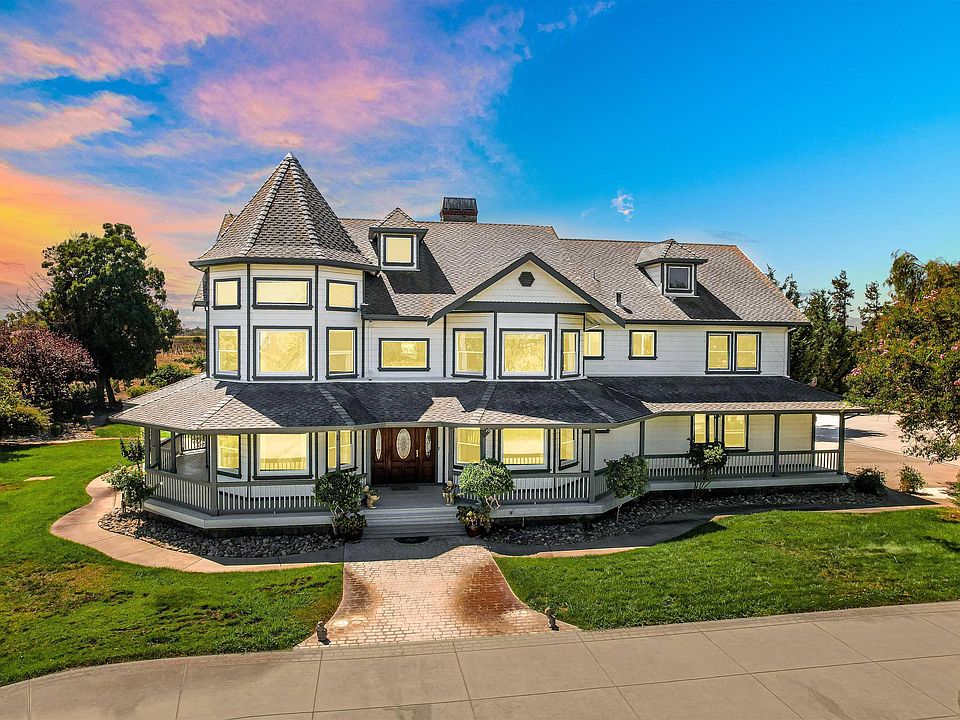 A must see victorian inspired home - 5 bedrooms/5 bathrooms. Impressive living space from moment you drive in past its entry gate. This home features an iron gated entry, a concrete circular driveway to the wrap around deck which leads to the oak floors and gourmet kitchen featuring granite countertop and a Wolf commercial stove. The design continues to the master suite with a tastefully decorated fireplace, walk in shower and jetted tub. Additionally, a detached shop with 16 Ft doors.