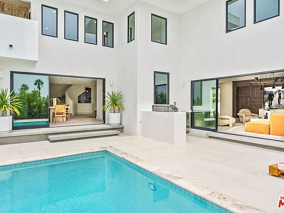 Motivated Seller. Bring offers. Recent $500k price reduction! Thoughtfully reimagined by Devall Design Home, this stunning five-bedroom, five-bathroom residence offers timeless style, natural light, and seamless indoor-outdoor living in the heart of the Hollywood Hills. Every detail has been curated with intention, from the uniquely designed architectural features to the expansive views spanning from Downtown to Catalina Island. The home's open layout is ideal for entertaining, with multiple living spaces, including one centered around a living tree that brings a touch of nature indoors. A dramatic curved staircase anchors the main living area, complemented by a custom-built bar and designer lighting. The oversized pool, outdoor kitchen, and fireplace create an effortless extension of the interior spaces. The chef's kitchen is outfitted with a full suite of Miele appliances, a built-in coffee bar and is the heart of the home. Sleek floor-to-ceiling Fleetwood windows and doors flood the home with light. Three of the five oversized bedrooms feature en-suite bathrooms and private outdoor areas. Located just moments from the iconic Sunset Strip and set within a secure community with 24/7 neighborhood patrol, this home offers both tranquility and easy access to dining, entertainment, and culture. A true reflection of the lifestyle in the Hollywood Hills.