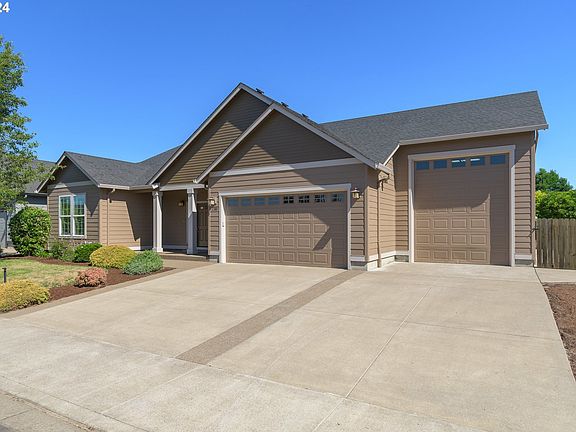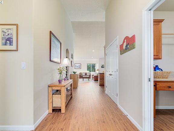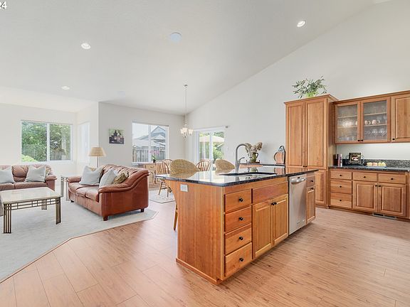 Pride of ownership in this one owner, custom, one-level home in The Reserve in Junction City. You will love this pristine home, meticulously cared for and very lightly lived in, designed for age-in-place living with exceptional 3 car garage with workbench and a separate RV/boat garage (30' deep), plus more RV/boat/Toy parking on pavement behind gate. Newly installed luxury vinyl plank in halls, kitchen and dining room allow for easy care and convenience. Great room design with vaulted ceiling, gorgeous kitchen with cherry cabinetry, separate beverage center, and two pantry spaces. The primary suite is spacious and its ensuite bathroom features double vanity, walk-in tile shower, walk-in closet plus additional closet for extra storage. Gorgeous landscape and hardscape with partially covered patio plus more patio space for lounge and dining. Surround sound speakers in main areas as well as on patio. A peaceful neighborhood close to shopping, Shadow Hills Country Club, wineries, and convenient access to airport. You won't want to miss this one!