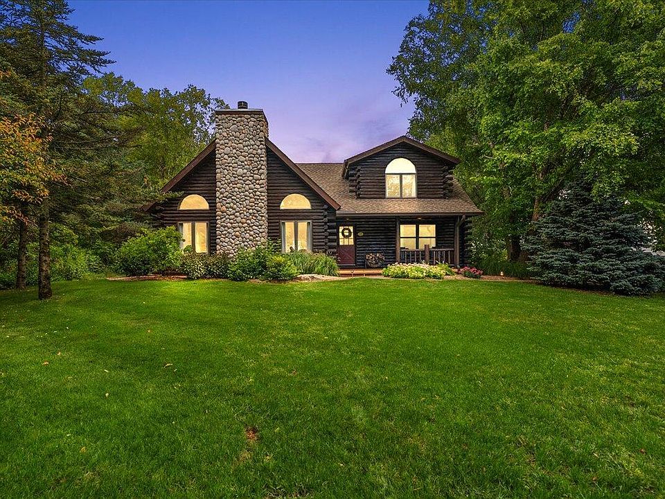 Your own private retreat on Rainbow Lake with 1.3 acres and 133 feet of frontage! This log home is positioned on two beautiful lots with an abundance of privacy, mature trees and perennial gardens. Rainbow Lake is a 180 acre all sports lake within 45 minutes of Grand Rapids. Back yard open to a large deck and brick paver patio with stone steps as you approach the lake. There is a ''mini cottage'' with electricity that could be used as an art studio, potting shed or a play house. The large great room boasts a floor to ceiling fieldstone wood burning fireplace. Two main floor bedroom with newly remodeled full bath. Kitchen with new retro appliances open to dining area and sun room overlooking the lake. Upstairs you'll find a private primary with remodeled bath, walk in closet and office/reading area open to the two story great room. List available of recent updates including whole house generator. Natural gas. If you're looking for a peaceful lake setting this is your home!