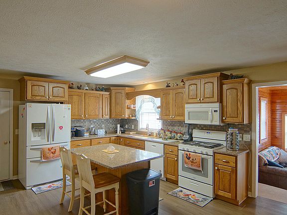 Escape to peaceful country living with this spacious ranch home on a quiet rural road. Featuring 4 large bedrooms, 3 full baths, and a sprawling open floor plan, this home is custom built for comfort and entertaining. The main level offers a generous kitchen, oversized dining and living room, plus a with patio doors leading to a sparkling inground pool. Durable luxury vinyl floors run throughout, and high ceilings enhance the open feel. The finished basement includes a family room, wet bar and extra living space. Outside, custom concrete surrounds the pool, while a large pole barn with concrete floors, furnace and abundant lightning provides endless uses. The alternative outdoor wood burning boiler heats the water, pool and barn adding efficiency and charm. Tucked away on a lightly traveled road, this property offers the perfect blend of privacy, space and amenities.