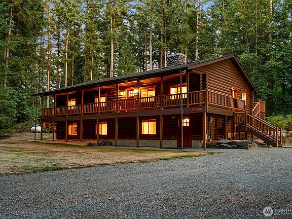 Tranquility abounds on this shy two acre paradise, featuring an immaculate Multi-Gen capable Log Home! Upper floor features vaulted ceilings, woodstove backed with beautiful river rock accent, open-concept kitchen, 3 generous sized bedrooms, 2 ba., & spacious decks. The lower level is all new featuring family rm, large rec rm, 2nd kitchen, 2nd laundry rm, 3/4 bath & Sauna! Property also features standby generator, A/C, walking paths, 24x24 2-car carport, 24x24 insulated & heated workshop w/ 12 ft sliding door, RV pkg, dog kennel, & more.. Enjoy the serenity, truly gorgeous fir trees, and deer that frequent the property! Great location 10 min. NW of downtown Enumclaw, with hiking, biking, fishing, skiing at your back door. Don't miss out!