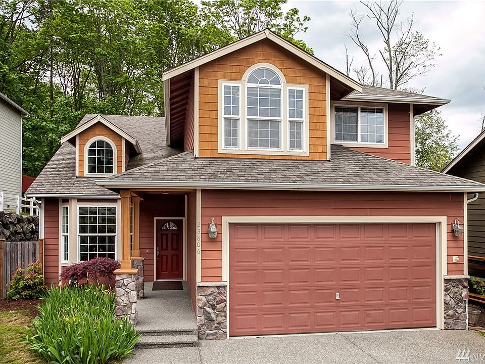 Light & airy craftsman home with an ever appealing great room design. Striking formal living/dining rooms have soaring vltd ceilings,arched entries,robust columns & a gas fplc.Cinnamon toned cabinets & tile counters grace the large kitchen.Unique arched window and a gas fplc enhance the comfortable family rm.Huge master suite has a sitting rm w/yet another fp plus a deluxe tiled bath.Tranquil greenbelt setting,deck patio,gardens & shed complete the enviable setting.Northshore schools.