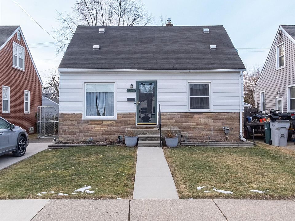 This charming, move in ready, 3 bedroom bungalow in Hazel Park is meticulously cared for and well maintained. Gorgeous, hardwood floors and oversized living room windows provide a bright, airy feel upon entry of the home. The vinyl windows throughout the house have been updated. The new security entry front door with gorgeous glass window feature is a tasteful and functional addition to this home. The updated, eat-in efficiency kitchen is cheery with navy cabinets, recessed lighting, updated counter tops and tile. The new appliances stay with the home. The full bath was recently updated (2020). Two bedrooms with ample space are located on the first floor and the primary bedroom is located upstairs. There is a roomy walk in closet and plenty of space for a small sitting area or home office upstairs. The basement is huge and ready for finishing. Laundry room is downstairs and appliances remain. Basement is plumbed for a half bath. The backyard is fully fenced and the one and a half car garage has an additional space for a workshop within. Newer furnace and central air. This home has beautiful curb appeal. A close proximity to major expressways and a quick walk to award winning restaurants and night life, this home is in the heart of Hazel Park and a fantastic find!